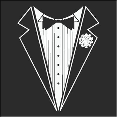 This Tuxedo t-shirt is 100% cotton black guys t-shirt with a white image of a tuxedo suit with shirt, bow tie, jacket lapels, and flower printed on front. Item: T1001